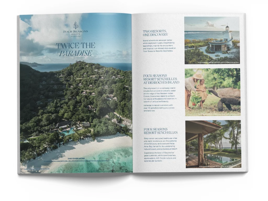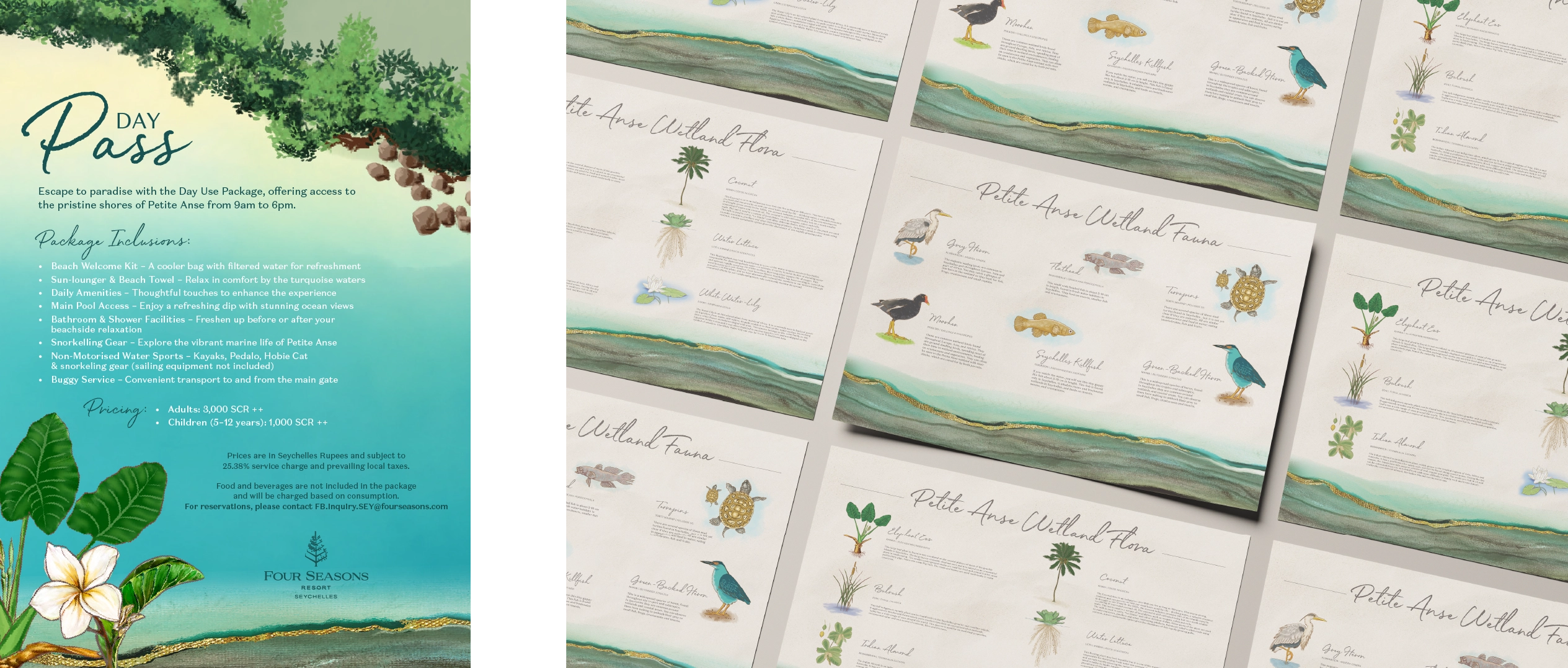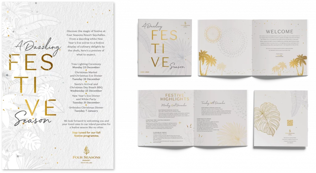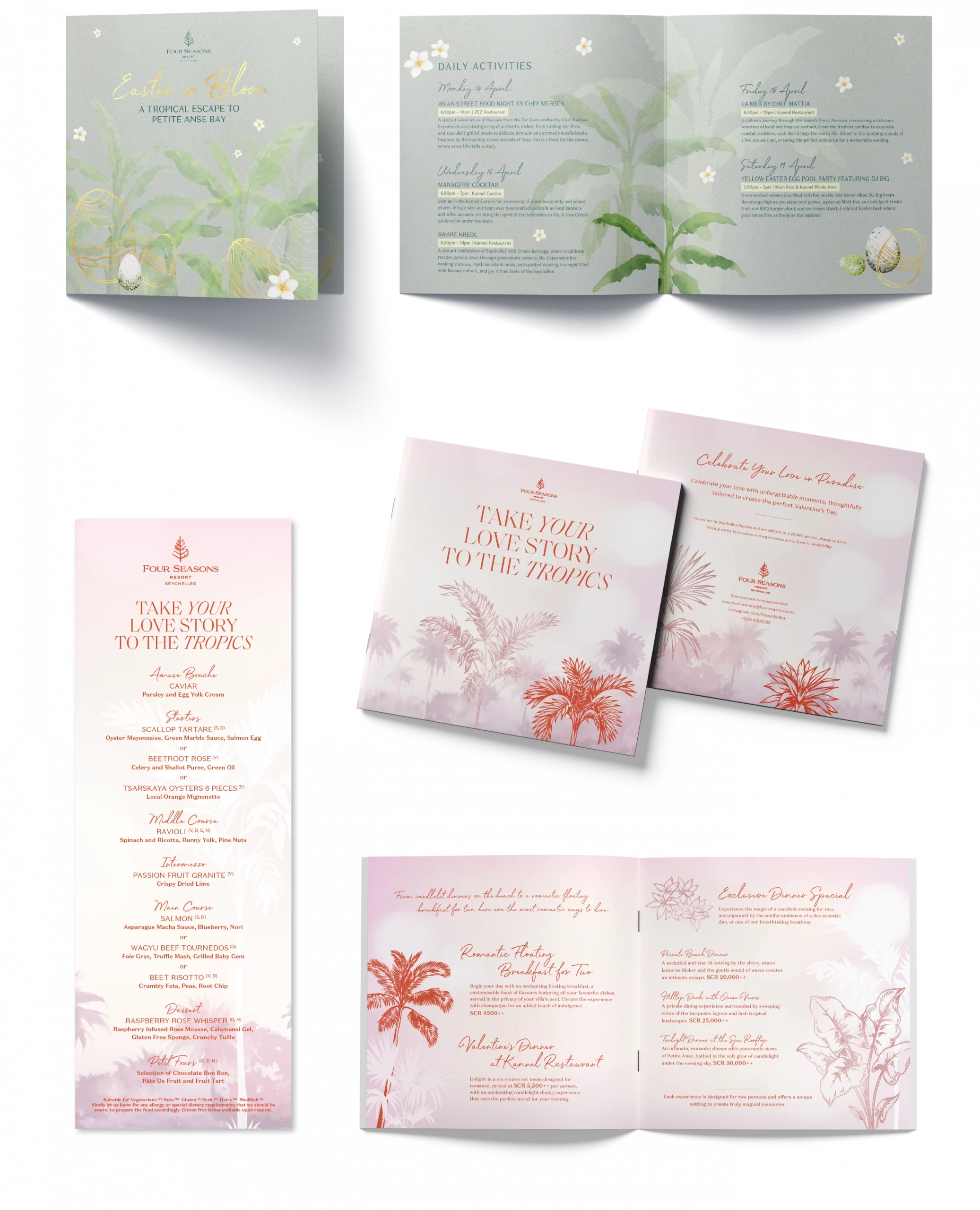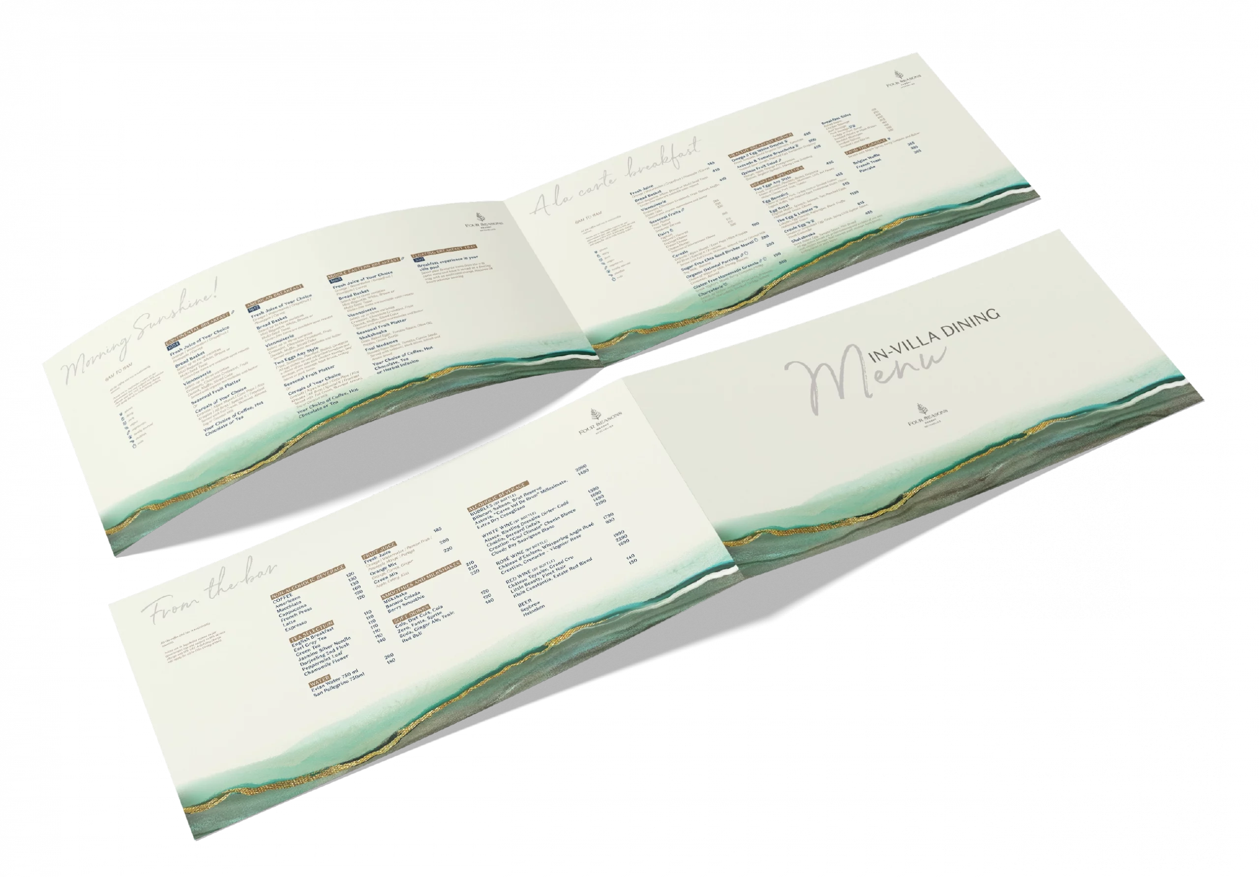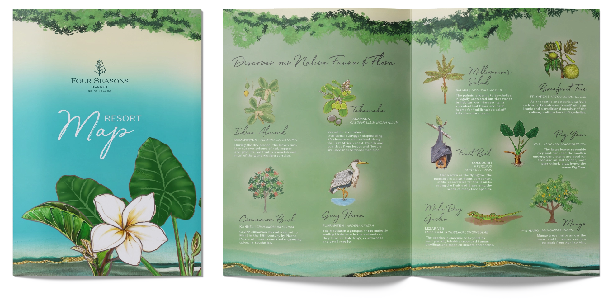 The setting does the talking here. Our work supports the feeling of the destination, shaping how the story is experienced across the resort. Through a refined map, considered experience signage, and elevated in room collateral, we brought clarity and continuity to the guest journey so every touchpoint feels seamless, intentional, and unmistakably Seychelles.