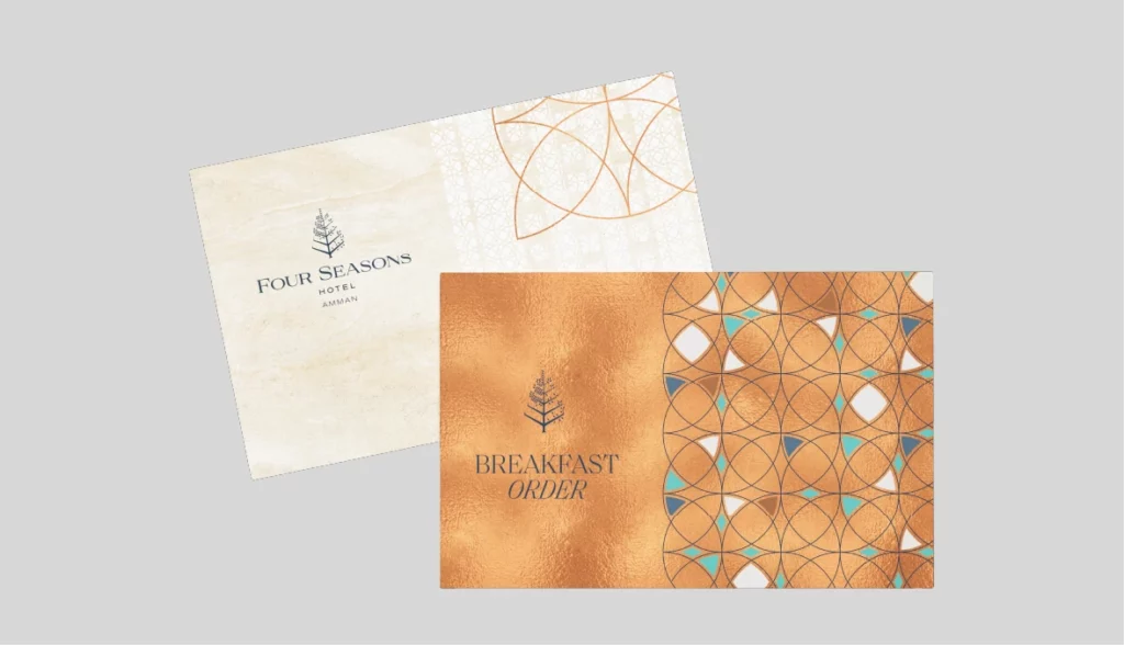 The design rationale for the Four Seasons Hotel in Amman harmoniously blends tradition and modernity through a carefully curated palette of colors and patterns. Turquoise, light sand, midnight blue, and copper create an ambiance of elegance and warmth. Complemented by a Middle Eastern pattern of circles, the design resonates with cultural richness, lending a distinctive identity to the hotel.