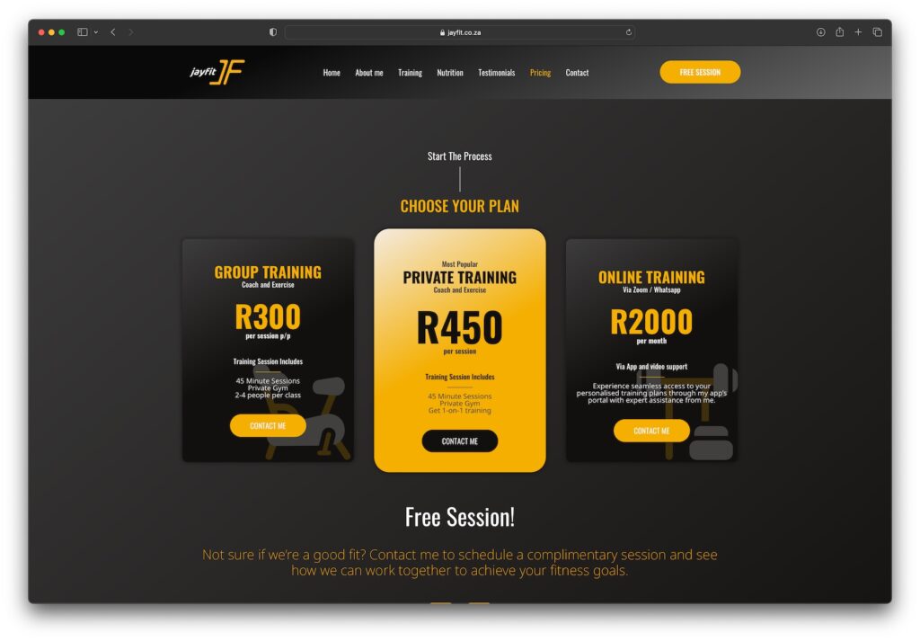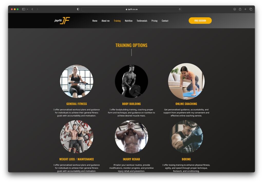 JayFit is a personal training and lifestyle coaching brand focused on discipline, transformation, and sustainable wellness. Sorted Design International was brought on to redesign the JayFit website—modernising the user experience while sharpening the brand’s digital presence. The site was built to reflect Jay’s no-nonsense approach: clear, focused, and driven. We streamlined the site architecture to make information easy to access—whether visitors were looking to sign up for coaching, read client testimonials, or connect via WhatsApp. Strong calls-to-action, bold use of photography, and mobile-first design ensured the platform felt dynamic and easy to navigate. We also advised on tone of voice and micro-copy to better reflect Jay’s personality: direct, motivating, and grounded in results. “We wanted the site to do what Jay does—cut through the noise and get you moving.” The result is a fast, functional, and visually strong site that gives potential clients a sense of who Jay is and how he can help them shift gears.