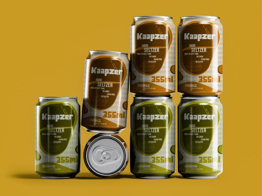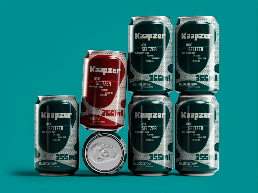 Kaapzer is a bold new hard seltzer brand crafted in Cape Town. With a brief to keep it fresh but with dark, moody undertones, Sorted Design International developed a packaging system that’s both punchy and distinct, striking a balance between urban grit and crisp refreshment. Each of the five flavours, Blueberry, Cherry, Lime, Banana, and Orange, was given its own colour world, supported by a consistent visual language rooted in graphic forms, stylised droplets, and layered textures. The result is a series that holds together as a family, yet lets each flavour stand on its own shelf. Typography is assertive but clean, reflecting the no-nonsense character of the drink: no sugar, no gluten, no carbs. The 355ml packs feel modern and slightly unconventional, perfect for a younger market looking for something that doesn’t follow the usual soft pastel trend. “Fresh, local, and slightly rebellious, Kaapzer looks the way it tastes.” The final visual identity translates across cans, multipacks, and digital media, designed to catch attention and spark curiosity in a crowded category.