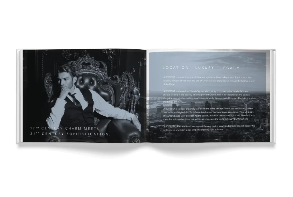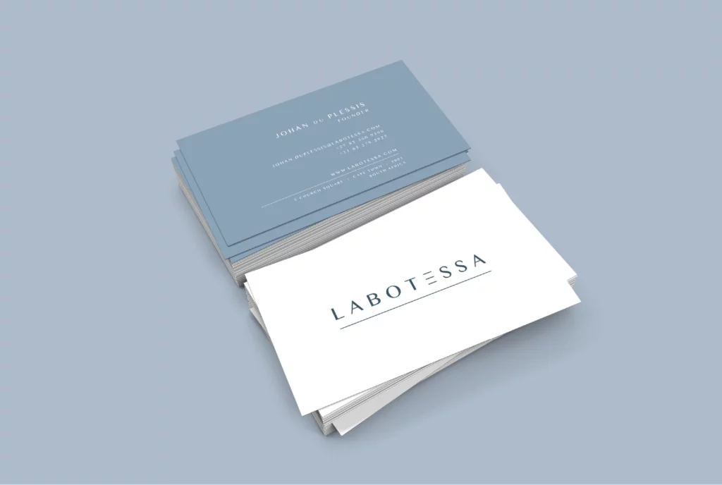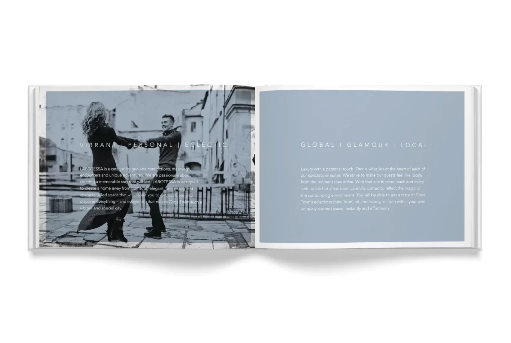 Labotessa is a boutique hotel situated in the heart of Cape Town’s historic Church Square. Our work centred on developing a refined brand identity that captures the elegance, intimacy and cosmopolitan nature of the guest experience. From the monogram to the tone of voice, every brand element was crafted to echo the sense of place: sophisticated yet inviting, timeless yet current. A soft powder blue and a quiet typographic system reflect the hotel’s contemporary take on old-world luxury. Marketing material, guest touchpoints and stationery were designed with restrained confidence, allowing texture and space to communicate prestige. This identity honours the building’s heritage while positioning Labotessa as a sanctuary for modern travellers who appreciate design, comfort and a uniquely local experience.