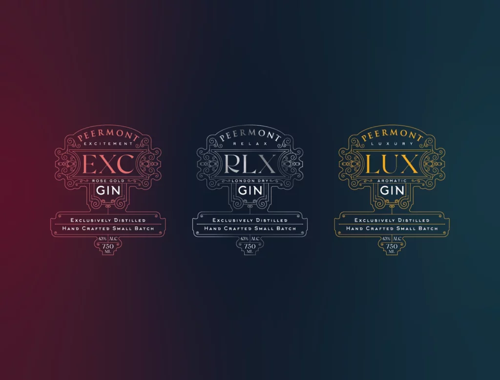 The Peermont Gin identity brings together the sophistication of high-end leisure with the handcrafted charm of small-batch spirits. Each variant, EXC, RLX and LUX, draws inspiration from a particular guest mood or moment: excitement, relaxation and luxury. The packaging design is detailed and opulent, with intricate typographic flourishes and metallic embossing that evoke the world of vintage luggage tags, monograms and old-world indulgence. Each gin bottle is paired with its own collector’s tube, colour-matched and embossed to create a striking shelf presence and an unmistakable sense of exclusivity. The design system balances uniformity and individuality, creating a visual rhythm across the range while giving each variant its own character. This collection was created to honour the guest experience, turning a complimentary gin into a lasting impression of elegance and intention.