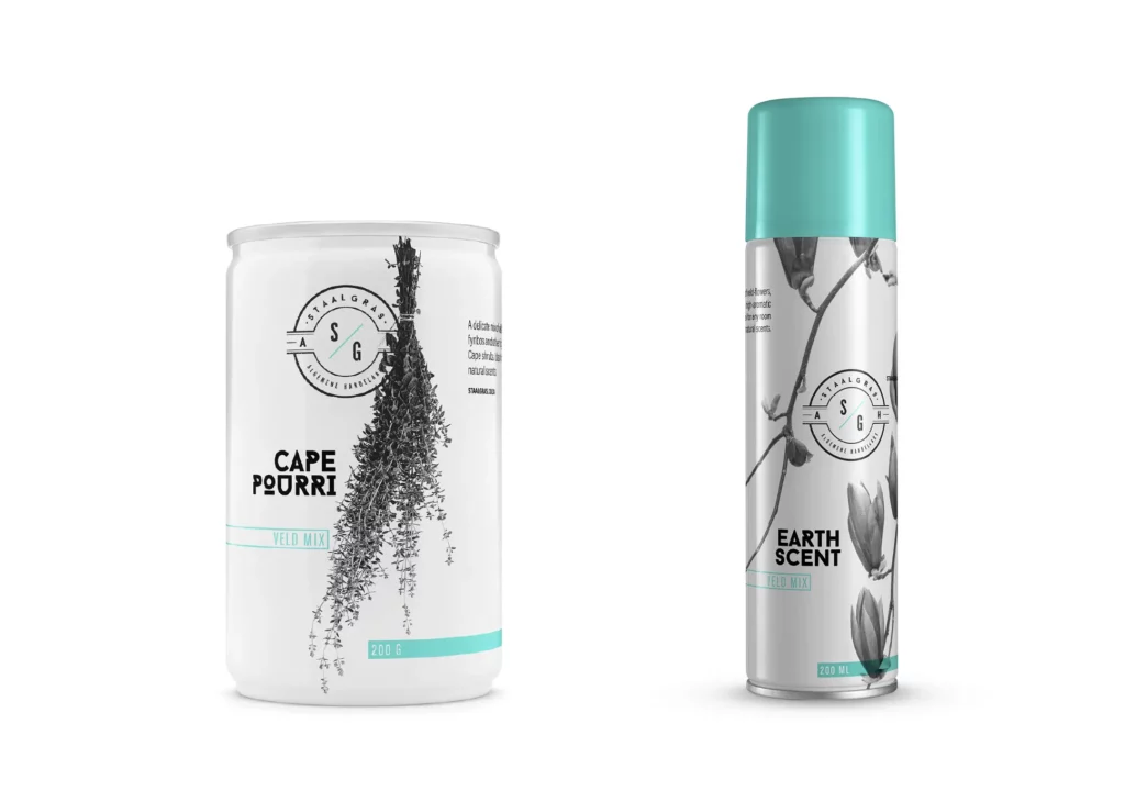 Staalgras is a proudly South African lifestyle brand crafting botanical products for the home—rooted in local landscapes and minimalist design. Sorted Design International developed a brand identity that celebrates the raw beauty of the veld while appealing to a design-conscious market. The logo system takes cues from traditional seals and emblems, giving the brand a sense of provenance and quiet authority. Paired with crisp typography and subtle graphic details, it holds space between the artisanal and the contemporary. The product range includes botanical sprays, room scents and natural blends—each presented with restraint, elegance and a distinctive mint-accented palette. Packaging design balances natural textures with clinical clarity, using monochrome botanical photography and glass-like surfaces to elevate the everyday. From swing tags to aerosol labels, every item feels curated and consistent, while still carrying a handmade quality. “Staalgras lives where clean design meets local character. Uncomplicated, beautiful and quietly South African.” The result is a brand that feels modern yet grounded, ideal for both local and export markets seeking lifestyle goods with a sense of place.