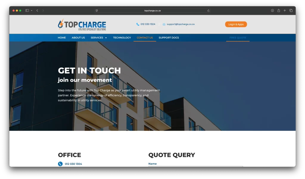 The layout structure guides both new users and existing clients toward relevant tools and support documents, with smart interactions designed to streamline engagement. From water and energy management to tenant support, the site showcases the full suite of services with structure and ease. This is not just a website, it is a working asset that reflects Top Charge’s position as a leader in sustainable and intelligent utility solutions.